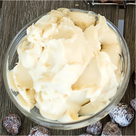 We only use raw, undefined shea butter to preserve its naturally high concentration of essential fatty acids, vitamin A, and vitamin E.